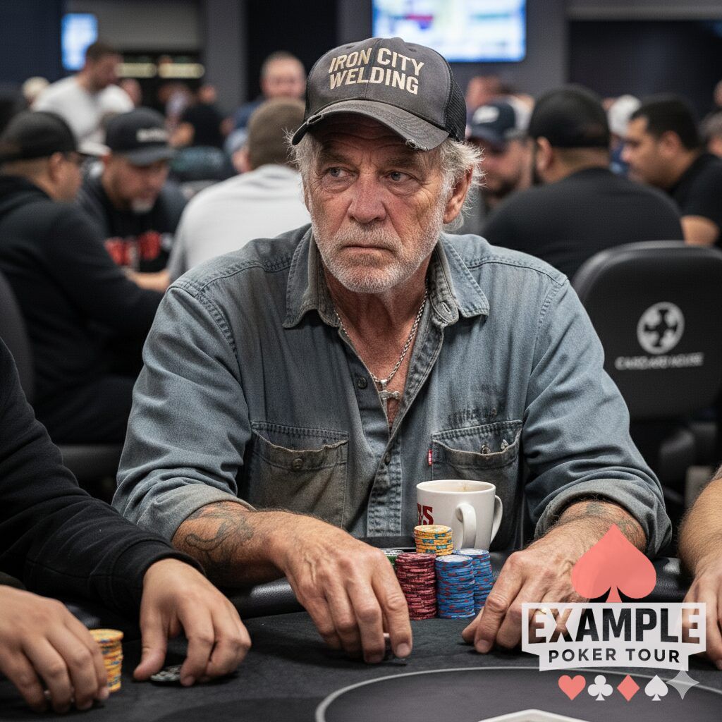 A retired Navy corpsman from Jacksonville, Hank brings battlefield composure to bubble play. Widowed and newly a granddad, he gardens and volunteers at a VA clinic. He learned cards on deployment and came back to live rooms five years ago, focusing on patience and maximizing the value he gets on his big hands. His first goal is a seniors event trophy here on the ExPT. He carries a brass challenge coin as his card protector.