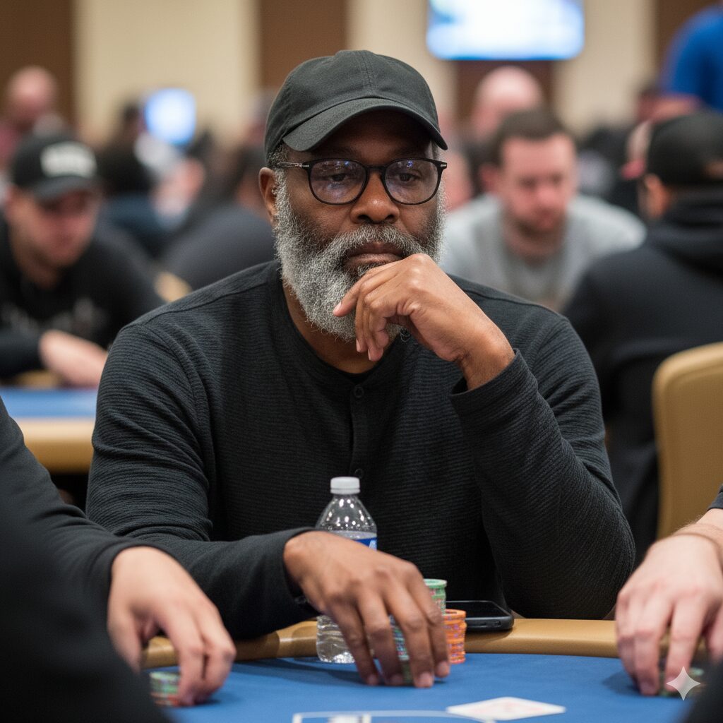 A Milwaukee barber and shop owner, DeShawn brings table‑talk and precision to every hand. A dad of one, he hosts Sunday dinners for his extended family and shoots pool after hours. He’s played cards since high school but only studied seriously the past three years, focusing on bet‑sizing tells and exploitative lines. Ambition: satellite into a $3,500 main and represent his neighborhood on stream. He keeps a tiny barber‑pole card cap as his signature.