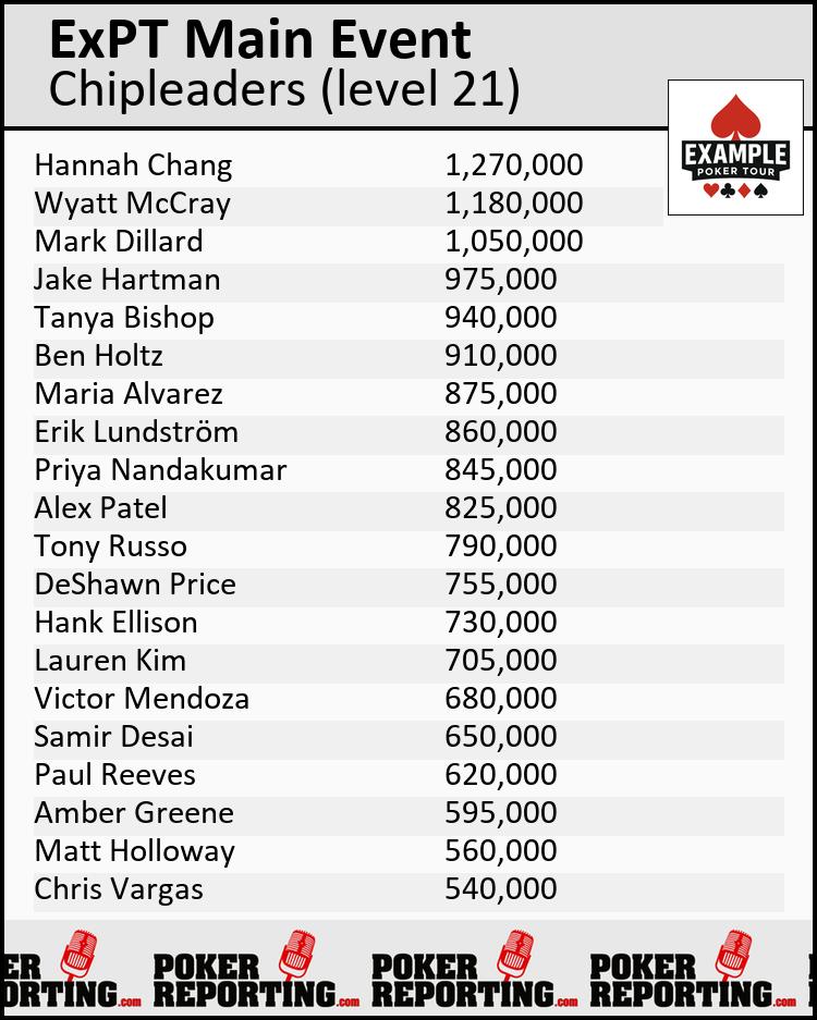Example Poker Tour Main Event – Day 2 Mid-Tournament Update
