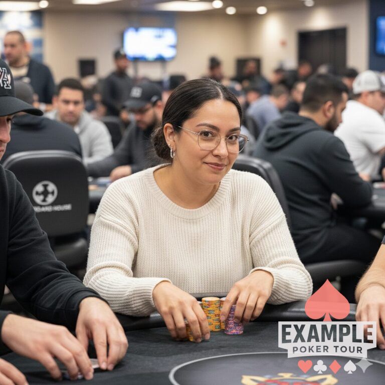 A bilingual Phoenix elementary school counselor, Maria juggles work, family dinners with her parents, and weekend charity 5Ks and poker tournaments. She discovered poker at a home game during the pandemic and dove into training sites, focusing on fundamentals and emotional control. She aims to become the top‑finishing woman on the tour this year. She collects enamel pins from every casino she visits and uses them as lucky card markers.